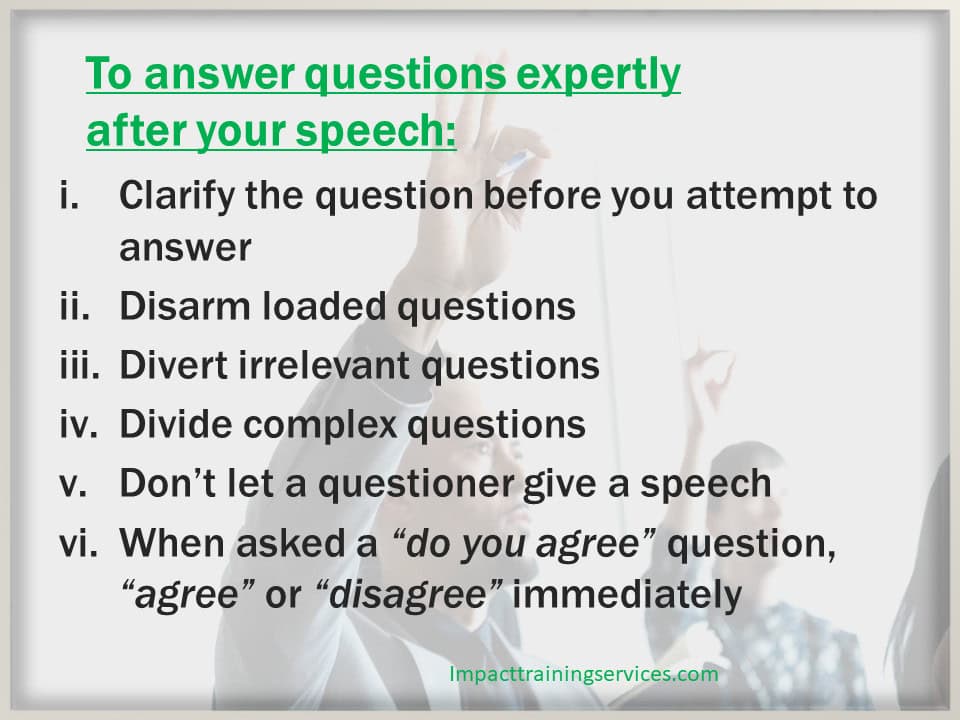 Now we are at the crux of the matter – actually handling the questions after your speech.