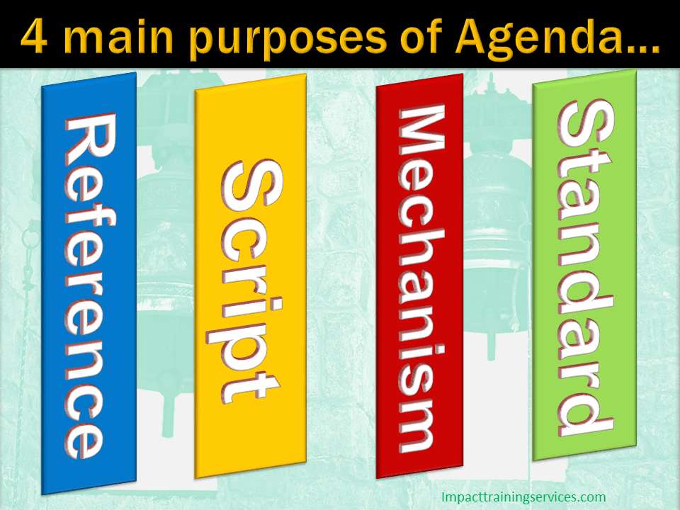 Well, while the agenda appears to be simply a list of “things to be done” at a meeting, in reality, the agenda has 4 recognised purposes. Let’s look at them…